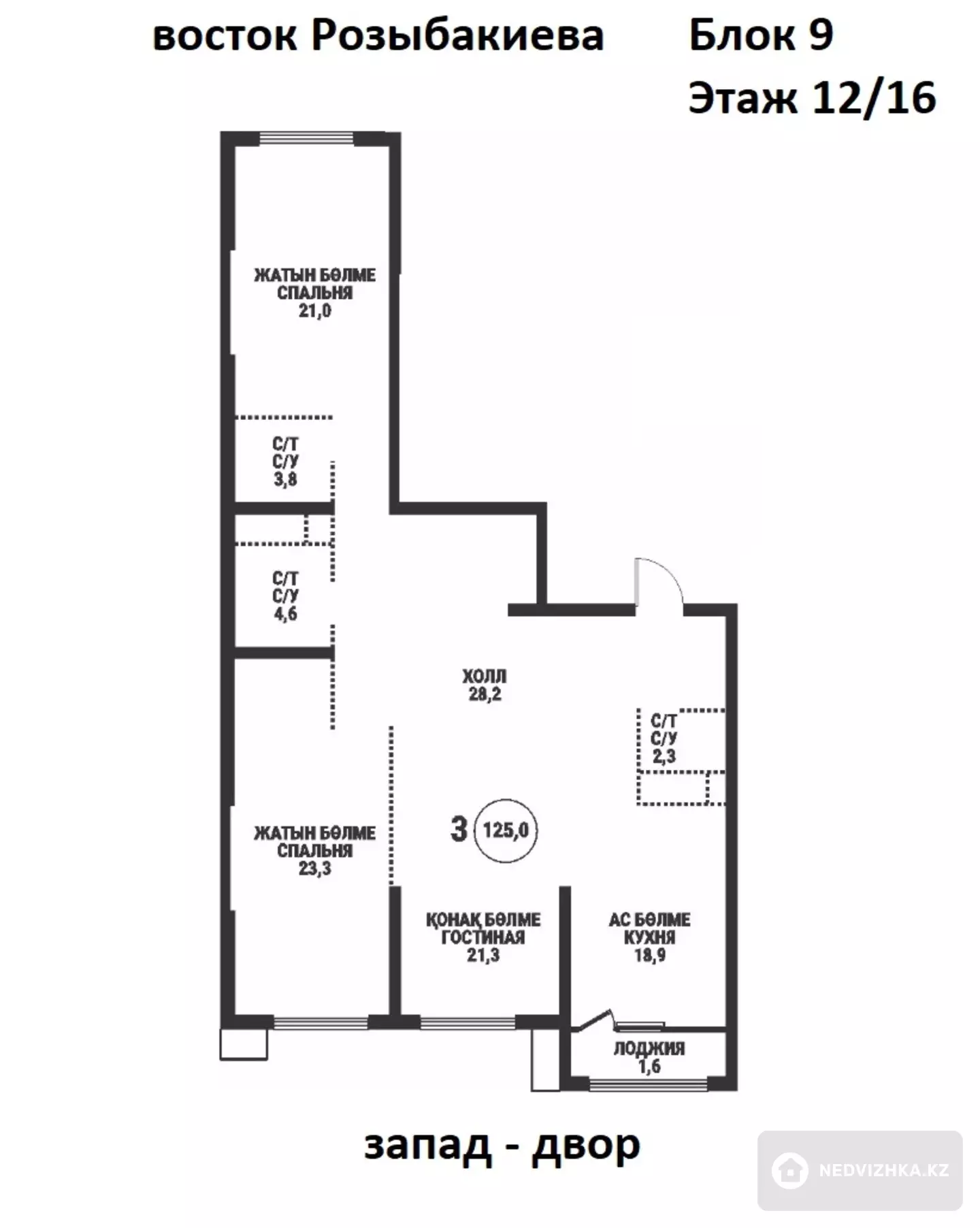 ЖК ESTET Застройщик BAZIS-A Дом бизнес класса Блок 9 Окна три во двор на запад и одно окно на восток на ул.Розыбакиева Черновая квартира Потолки 3м