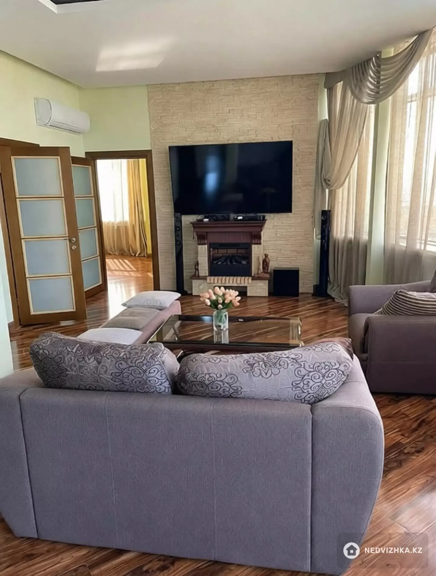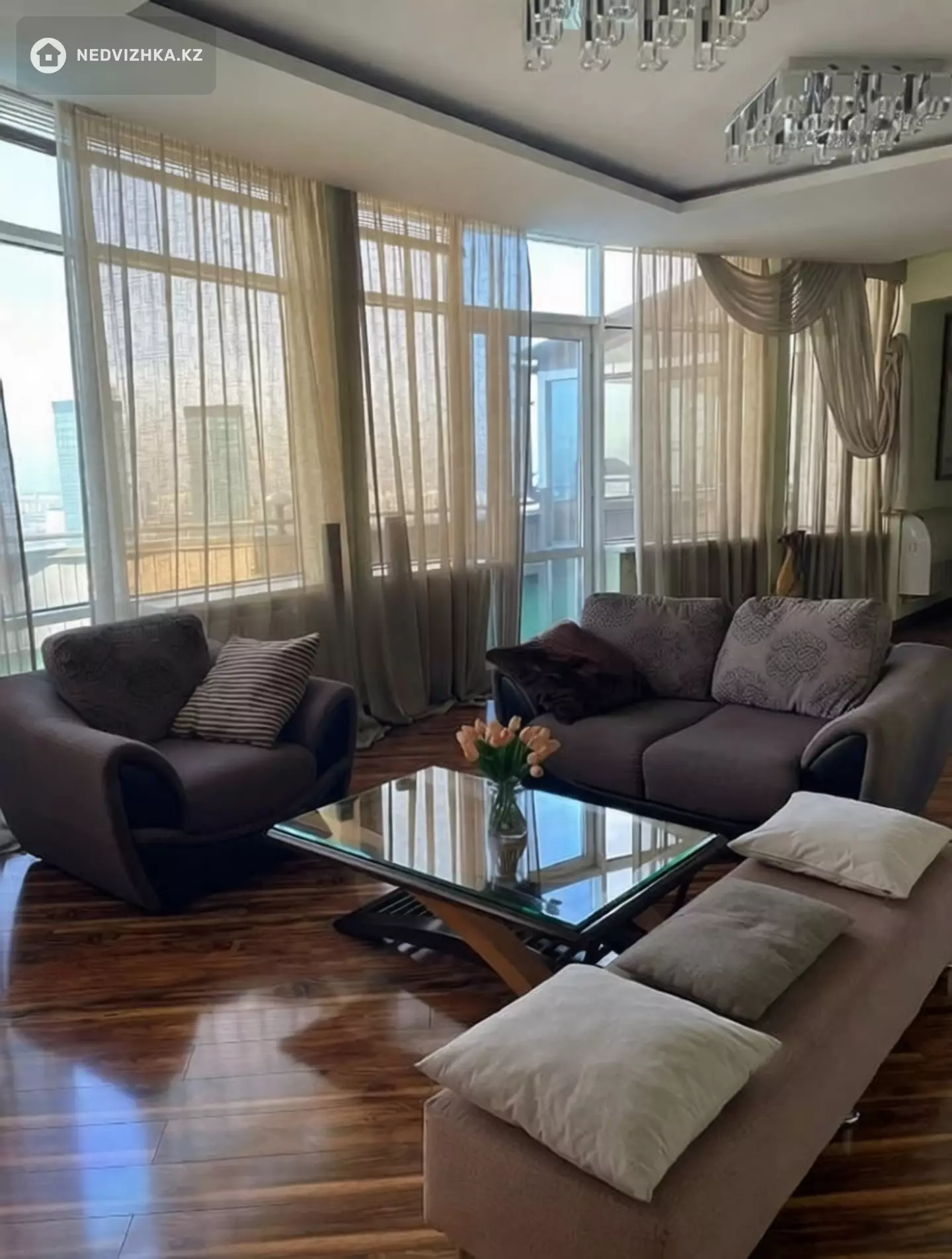 4 спальни, кухня, зал, 3 санузла. Качественная мебель, техника встроенная, посудомойка, сушильная машина, стиральная машина, гардеробная, робот-пылесос, паровой генератор, посуда, консьерж и охрана.