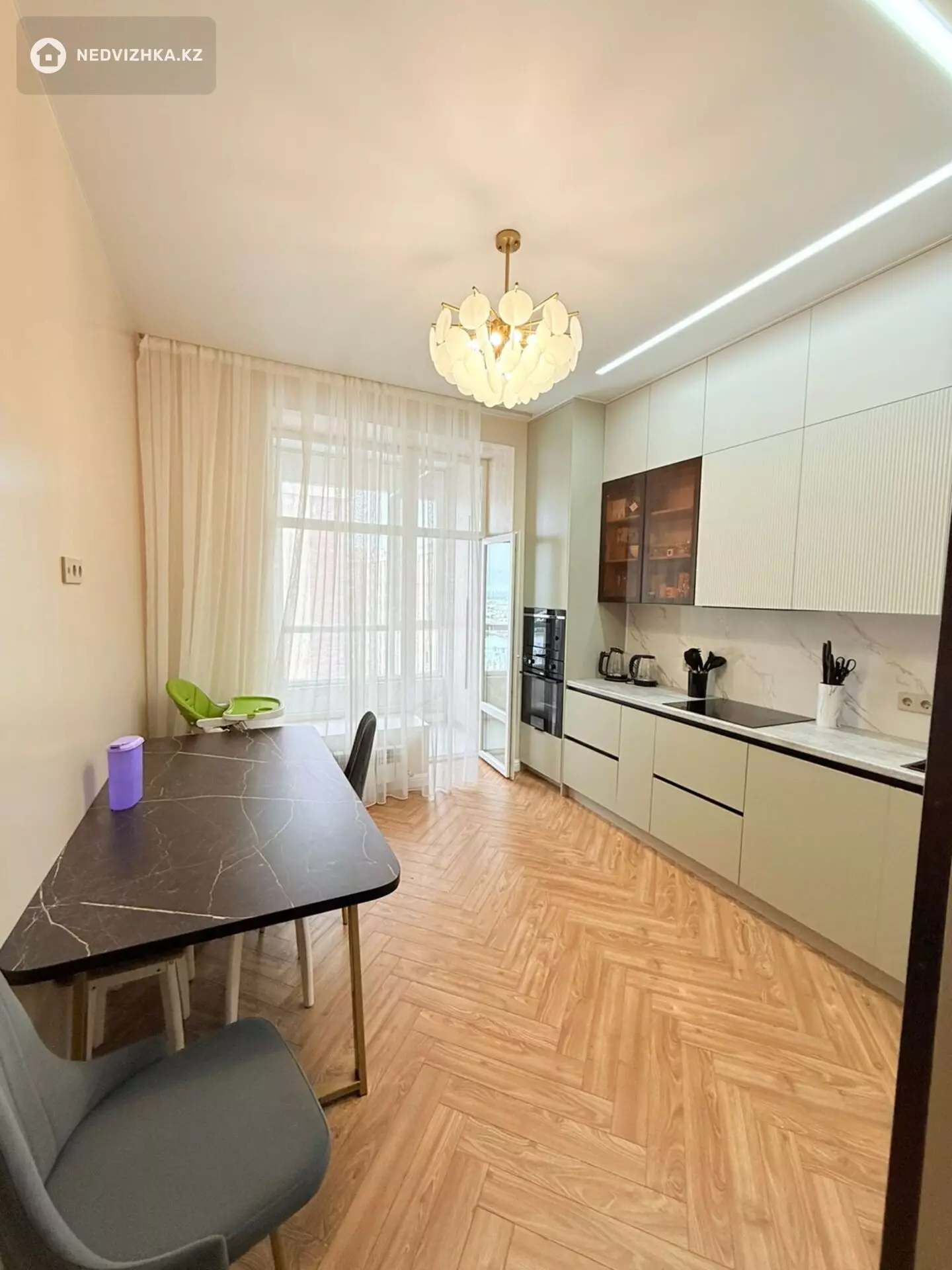 🏡 Просторная 3-комнатная квартира 112, 5 м² | Бизнес-класс | Новый кирпичный дом Продаётся новая дизайнерская квартира, в которой всё продумано до мелочей. Делали для себя, использовали качественные материалы и современную технику. 📍 8 этаж из 9 📏 Площадь — 112, 5 м² 📐 Высота потолков — 3, 1 м ✨ Главные преимущества квартиры 🧱 Толщина стен 60 см — дом из жжёного кирпича, отличная шумо- и теплоизоляция 💧 Общедомовой фильтр воды — чистая вода во всей квартире 🪟 Подоконники 50 см — люксовый керамогранит под травертин 🛡 Окна с прочными бесцветными решётками + сетки антипыль 🌡 Тёплый пол в обоих санузлах 💡 Подсветка штор в мастер-спальне с управлением на пульте ✨ Люстры также управляются с пульта 🏠 Планировка Супер удобная планировка, где максимум полезной площади, не потерлись квадраты в коридорах. 🛋 Просторная гостиная — 35 м² 🛏 Мастер-спальня — 25 м² с собственным санузлом 🍳 Кухня — 14 м² со встроенной техникой Hansa 🧊 Большой холодильник и морозильник 🌇 Лоджия из кухни со встроенными шкафами — удобно для хранения Окна выходят во двор (запад) и школу (восток) — тихо и уютно. 🏢 Дом бизнес-класса 🚪 Всего 3 квартиры на площадке 🔒 Закрытый двор на пандусе 😍 Панорамный стеклянный лифт — особая фишка дома 🏛 Фасад — травертин и клинкерный кирпич 🎒 Идеально для семьи Вид из детской комнаты прямо на Комфортную школу №112 (в 50 метрах). Рядом также находятся: 🚄 остановка LRT 50 метров от дома 🏫 школа-гимназия №83, №86 🏫 школы №113, №57, №74 🎓 лицей NurOrda 🎨 Казахский национальный университет искусств 👶 детские сады №66 «Толагай», №81, №93 «Айголек», №71 «Молдир» 🛍 Инфраструктура 🛒 ТРЦ Damu Mall 🛍 ТЦ Jibek Joly 🚆 ЖД вокзал Нұрлы жол 🛋 Квартира полностью укомплектована ✔ Вся мебель и техника остаются ✔ Современный дизайнерский ремонт ✔ Можно заехать и жить сразу 📄 Документы на руках 🏦 Подходит под ипотеку 🔄 Рассмотрим варианты обмена 📞 Звоните, чтобы посмотреть квартиру вживую. Такие варианты на рынке появляются очень редко.