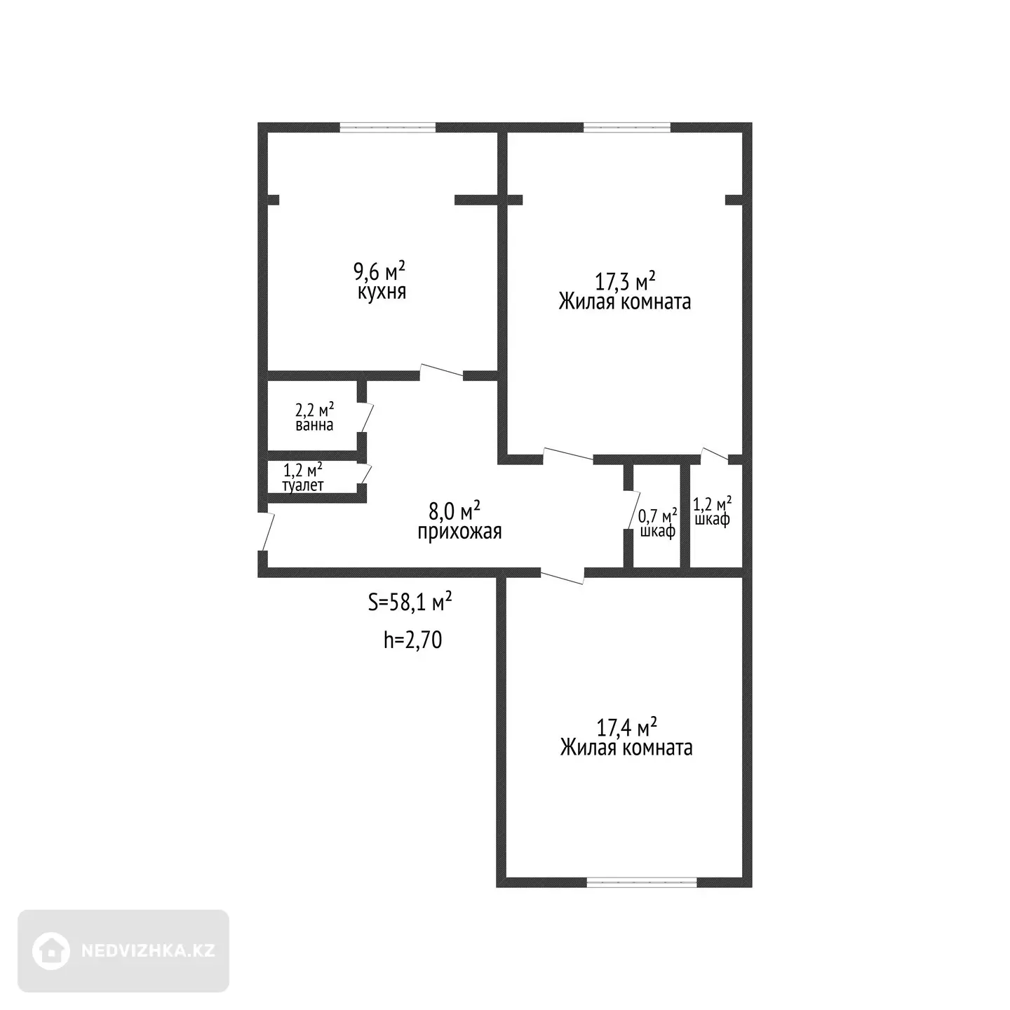 Общая площадь — 58,1 м².