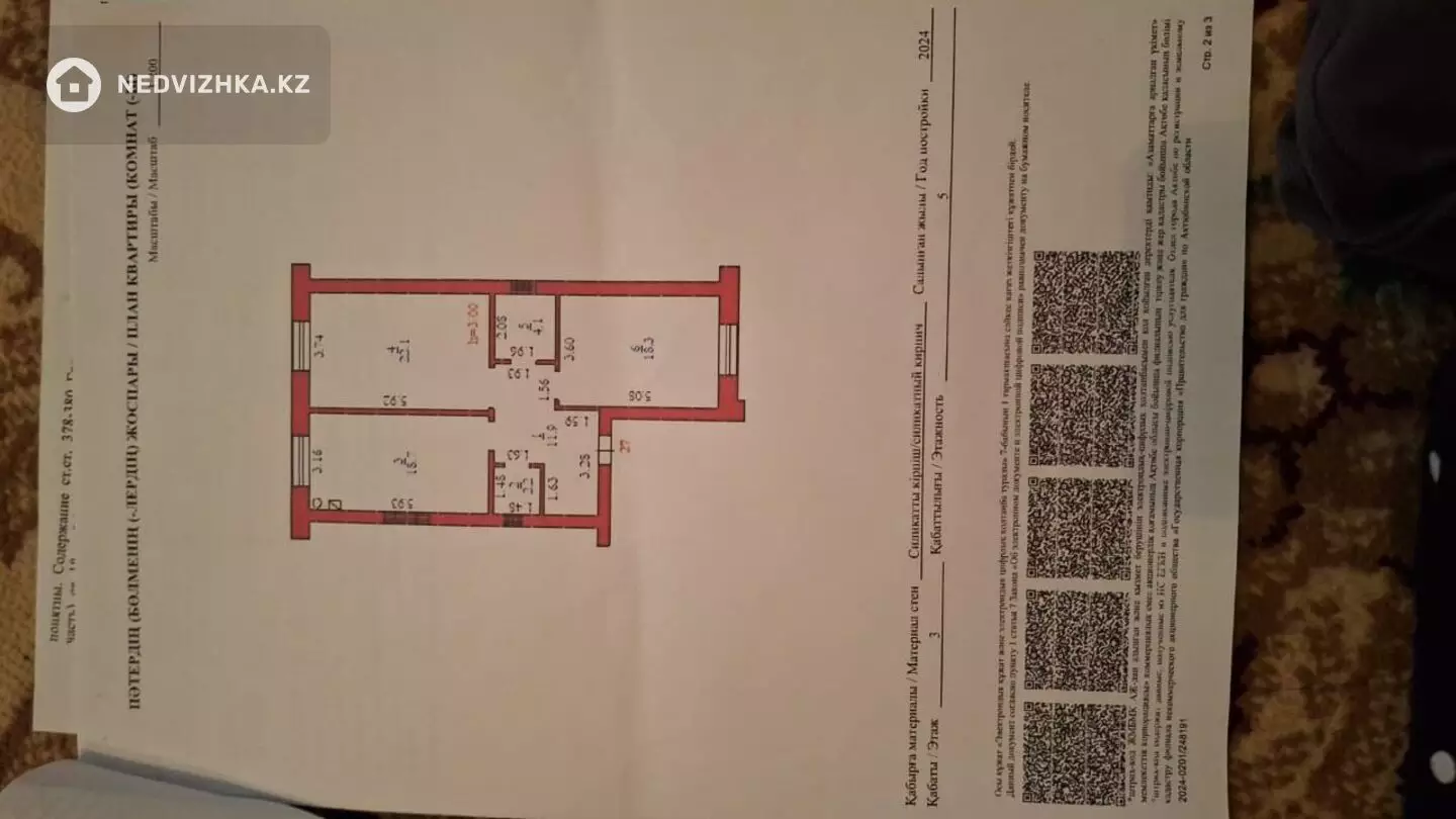 ЖК Парасат * Общ площадь: 77 * Год постройки: 2024г * Тип строение: Кирпичный 🧱 * Кол/комнат: 2x * Высота потолков: 3 * Этаж: 3 из 5 лифта нет * Состояние: предчистовой * Залог: не в залоге * Техпаспорт: есть * Расположение: Батыс-2 * Цена: 22.500.000 ипотека * 21.500.000 наличка