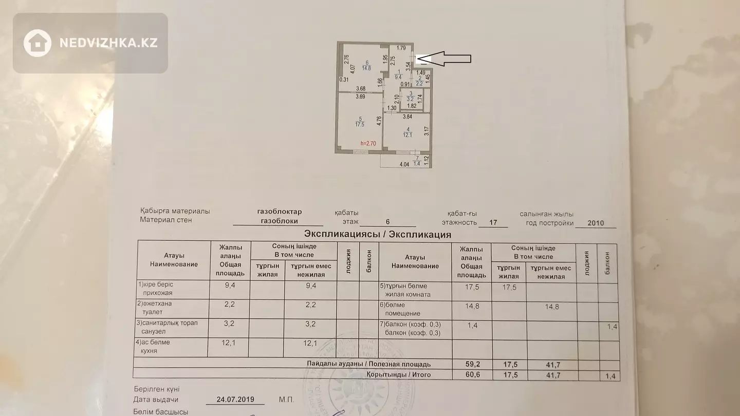 2-комнатная квартира, этаж 6 из 17, 61 м² в Астана, р-н Байконур, Богенбай батыра 56 - Ш.Айманова, Жилой комплекс Фаворит