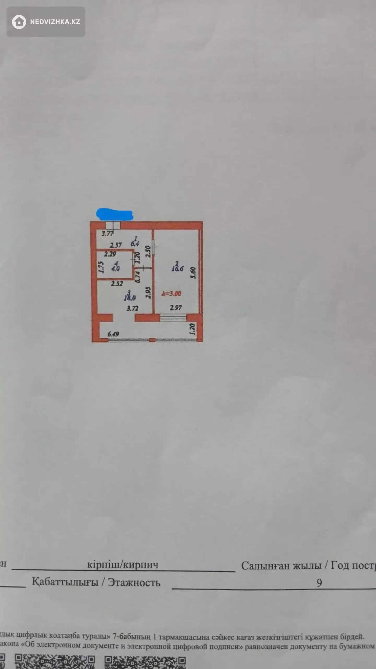 1-комнатная квартира, этаж 6 из 9, 45 м² в