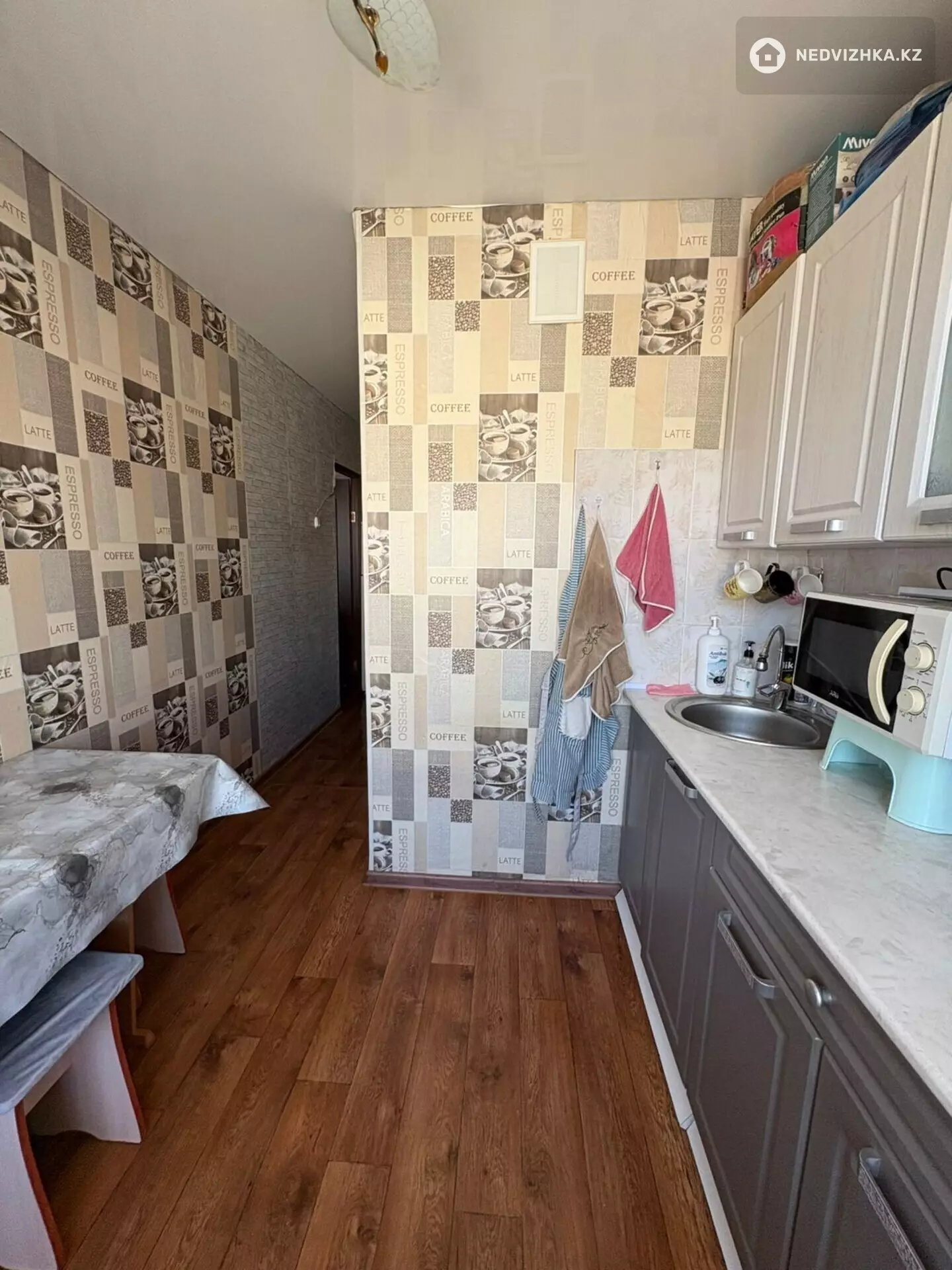 Застекленный балкон, пластик,окна пластик,выходят во двор,натяжные потолки,трубы пластик,дверь входная металлическая,вай фай Билайн,можно провести Казахтелеком, крыша не течёт проблем нет,тихий двор,соседи дружелюбные.