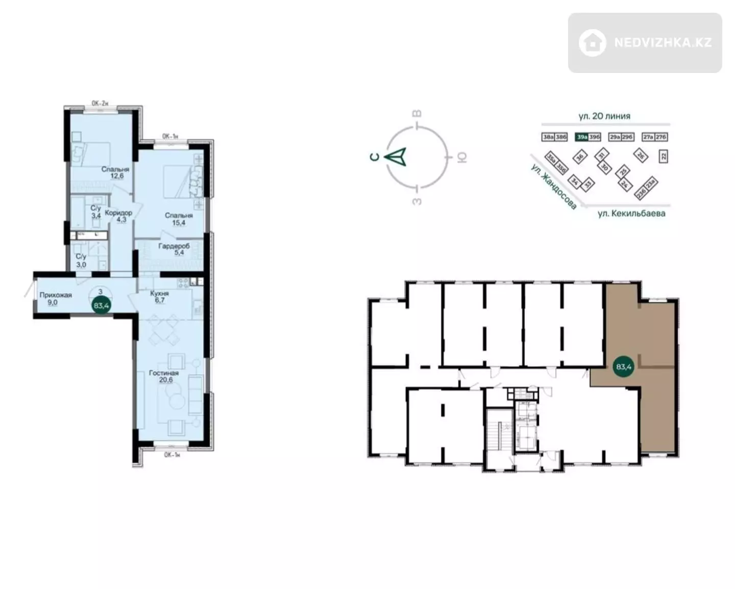 3-комнатная квартира, этаж 2 из 14, 83 м² в Алматы, Бостандыкский р-н, Жандосова 94А, Жилой комплекс Rams city