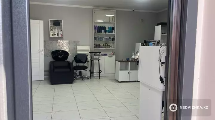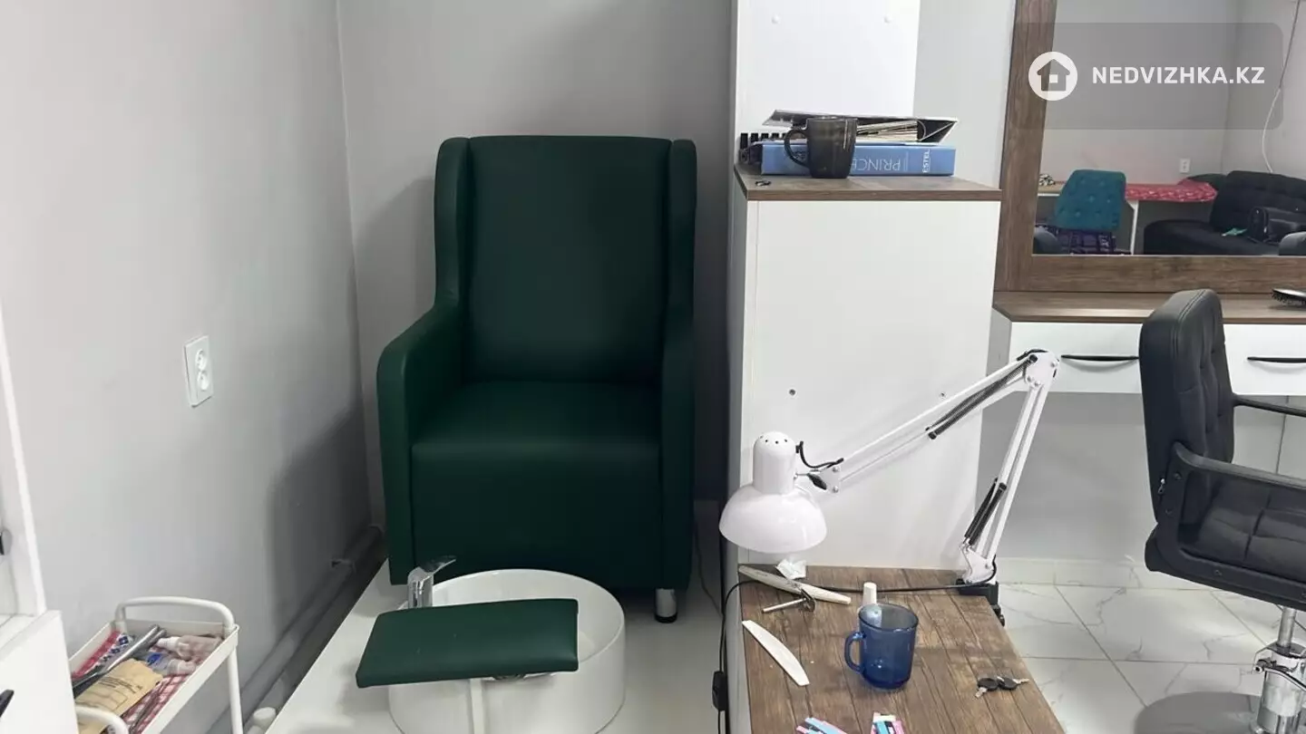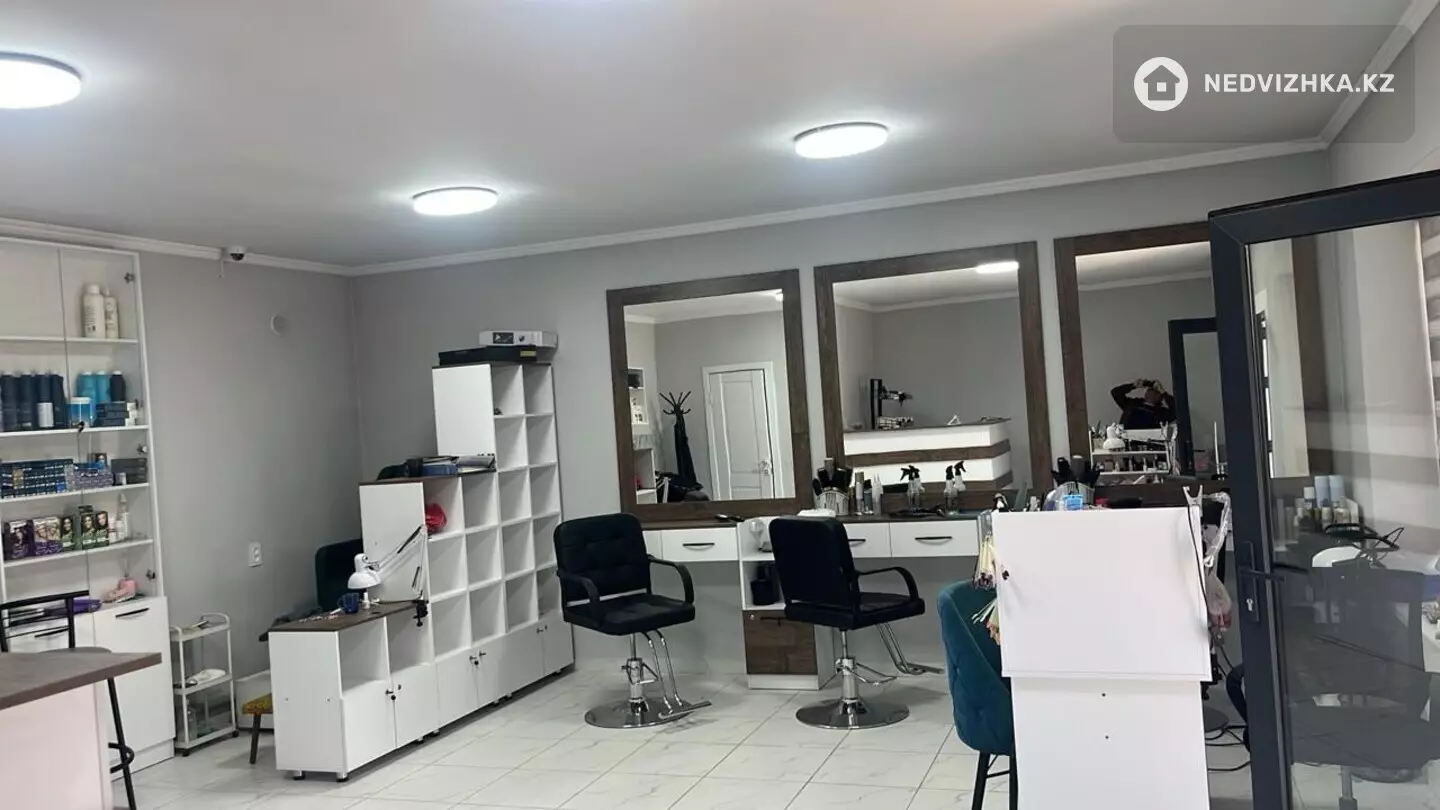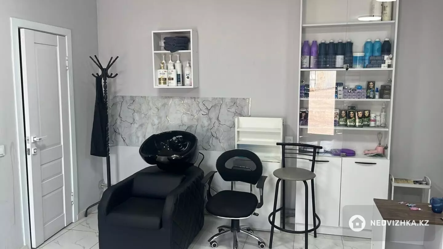 Есть 3 места для парикмахера, 1 для мастера маникюра, кресло-мойка, педикюрное кресло, стойка администратора, уборная, установлен кондиционер.