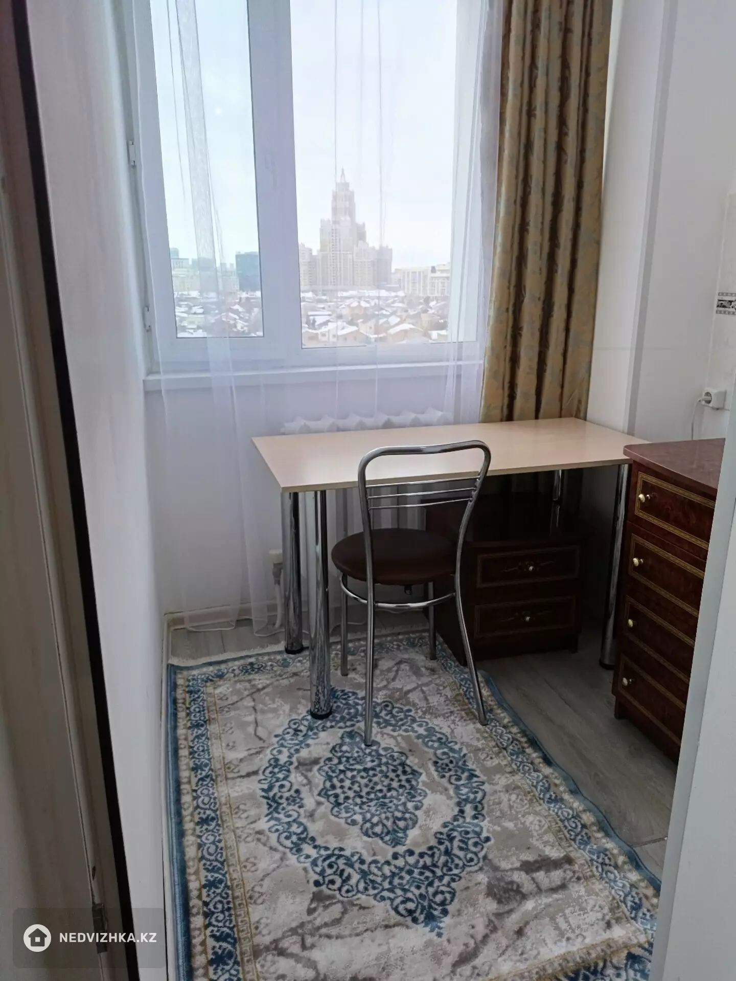 Сдаётся евро двушка после ремонта, квартира расположена в центре левого берега, рядом в пешей доступности Дом Министерств, Байтерек, университет Astana International University, парк Жетiсу, Астана Опера, Ханшатыр, множество магазинов, школ, очень развитая инфраструктура, отличная транспортная развязка. Квартира светлая и очень тёплая. В квартире сделана перепланировка и ремонт, квартира состоит из большой гостиной с кухней студией, спальни и отдельного кабинета, новый кухонный гарнитур, диван, шторы, бытовая техника и новая сантехника (унитаз, раковина), все смесители в ванне, раковине и в раковине на кухне новые, есть всё необходимое для проживания- стиральная машина- автомат, двухкамерный холодильник, микроволновка, электроплита с духовкой, большой вместительный шкаф для одежды с зеркалами, комод с зеркалом, рабочий стол, кухонный и стол- тумба, сушилка для белья, утюг и даже часть посуды. Квартира сдаётся за 200000 тенге в месяц плюс коммунальные (10000-15000 тенге), а также возвратный депозит 100000 тенге.Местоположение на карте
