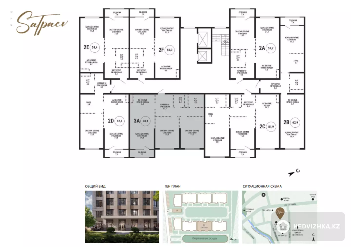 ЖК SATPAEV Застройщик BAZIS-A Окна на восток на прогулочную аллею и березовую рощу Сдача первый квартал 2027 года Преимущество: Новая школа в шаге от дома; Прогулочный сквер; Car-free двор с интерактивным play hub; Авторский дизайн холлов; Увеличенные энергосберегающие окна; Колясочные; Boxrooms для хранения вещей; Подземный паркинг; Многоуровневая система безопасности. Инфраструктура Рядом есть ТРЦ ADK где имеются супермаркет, заведения общественного питания, кофейни и магазины. ТРЦ RIVIERA PARK. Из образовательных учреждений рядом работают школы №65, 140, Институт горного дела. За медицинскими услугами недалеко от дома можно обратиться в диагностический центр «Аллергомед», Центр перинатологии и детской кардиохирургии, Научный центр урологии имени академика Б.У. Джарбусынова, поликлинику №17.Станция МЕТРО Сайран в 5-7 минутах пешей доступности и многое другое
