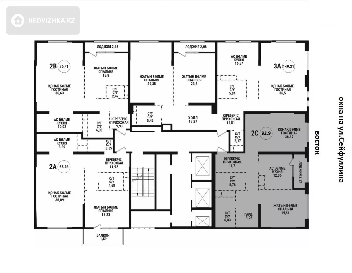2-комнатная квартира, этаж 14 из 15, 93 м² в