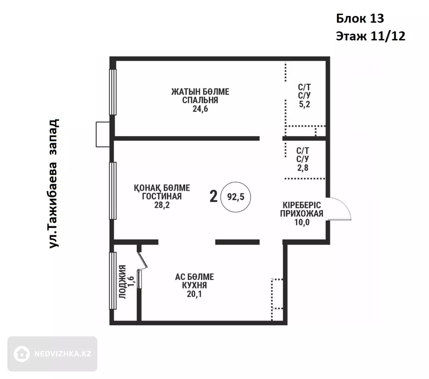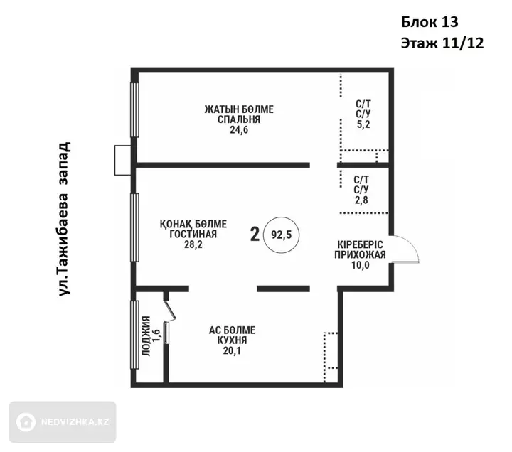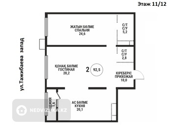 2-комнатная квартира, этаж 11 из 12, 92 м² в