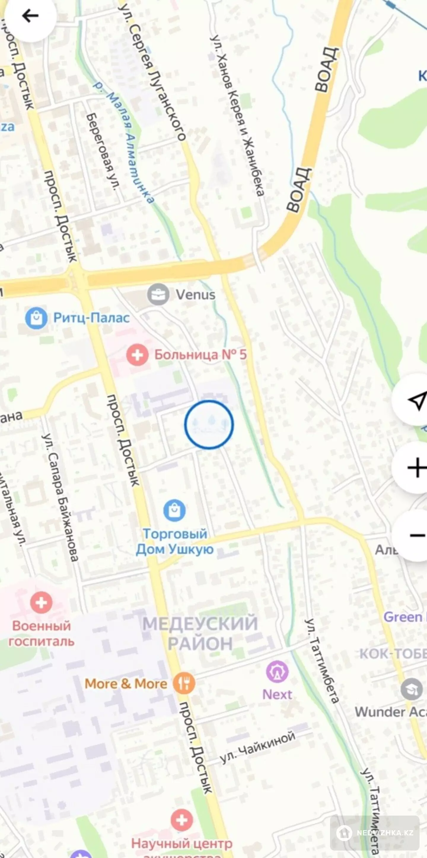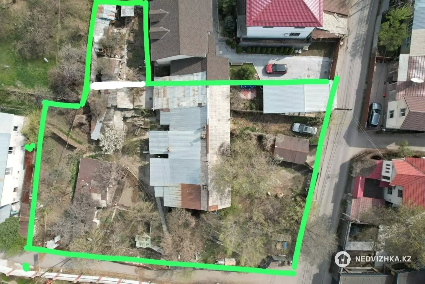 Продается участок площадью 19 соток, расположенный в 200 метрах от Терренкура. На участке находится дом барачного типа на 5 хозяев. У каждого хозяина свой участок с индивидуальной стоимостью. Общая стоимость участка — 565 млн тенге.