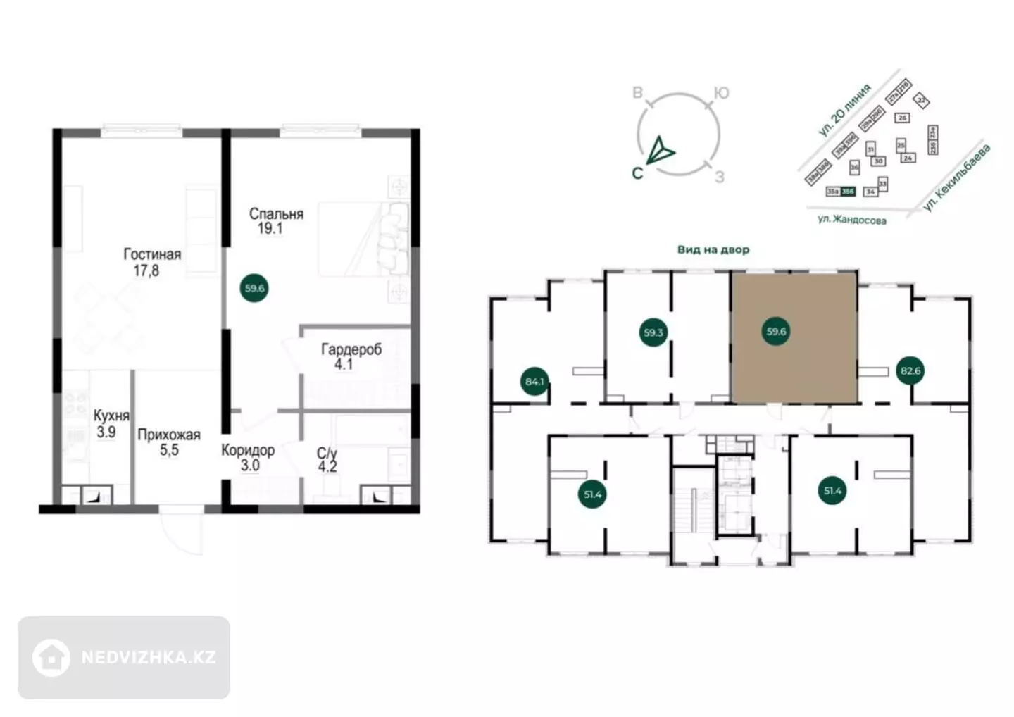 2-комнатная квартира, этаж 14 из 16, 60 м² в