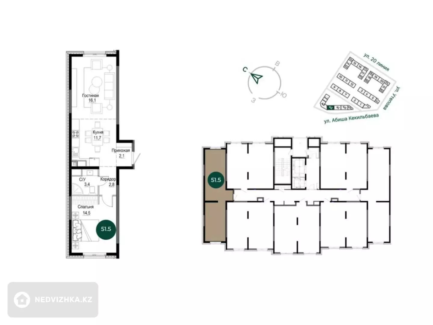2-комнатная квартира, этаж 13 из 13, 52 м² в Алматы, Бостандыкский р-н, Жандосова 94А, Жилой комплекс Rams city