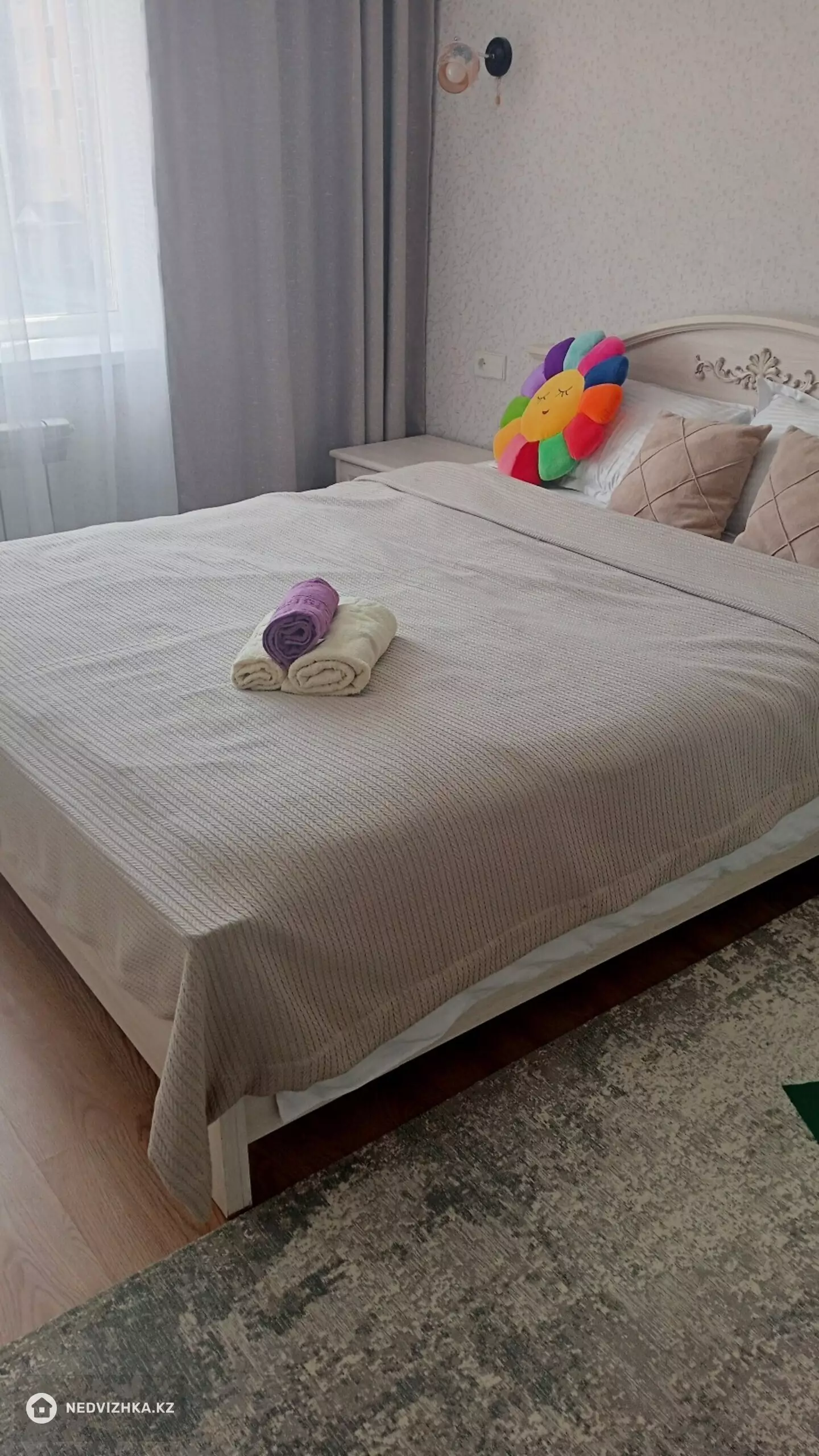 Светлая, уютная 2-х комнатная квартира с современным ремонтом и всей мебелью. В квартире есть все для проживания. Только для акуратных гостей без курения в квартире, вечеринок и животных. Есть депозит 15000 (возвращается при выезде). Рядом находиться гарыш сапары, больница национальный координационный центр медицины, национальный университет обороны мега силквей, Назарбаев университет, Назарбаев школа, частная школа. Локация позволяет выехать в любую точку города.